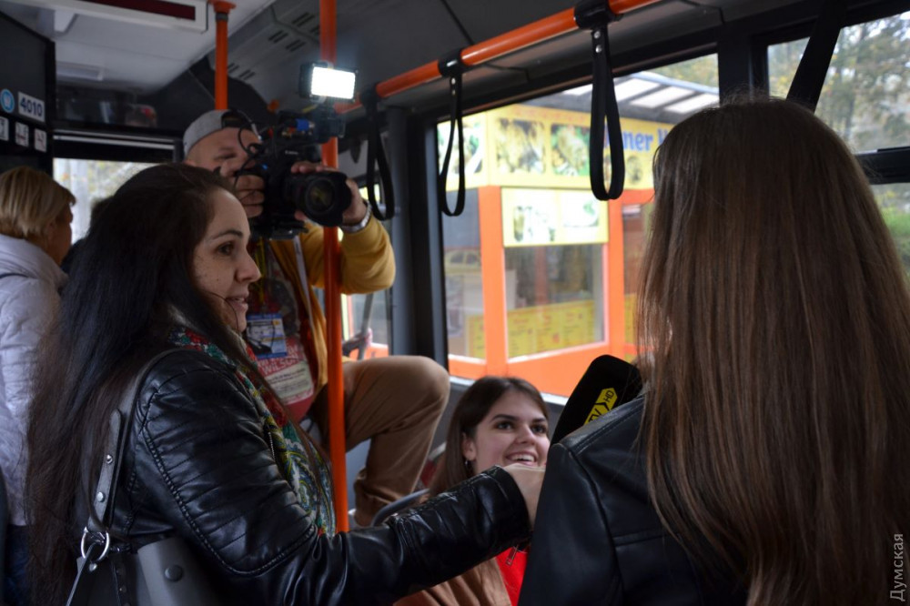 Пуск электробуса вызвал живой интерес у прессы, которая заняла большую часть салона. В итоге, уже на первой остановке случился конфуз – группа студентов, увидев десяток журналистов с камерами, испугались и сначала хотели отказаться от поездки, однако их уговорили зайти в салон.