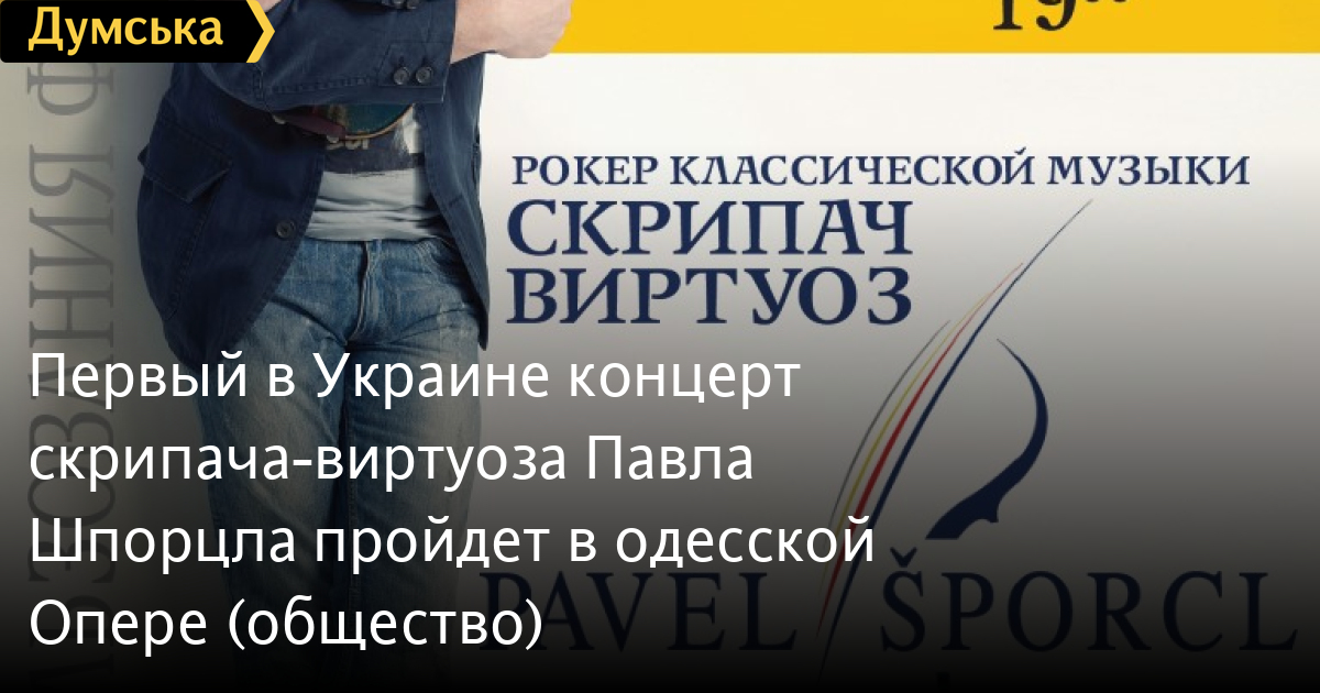 18 апреля в Одесском национальном театре оперы и балета, в рамках культурного обмена между Чехией и Украиной, при поддержке Алексея Гончаренко, посольства Чешской Республики в Украине и Чешского центра, состоится концерт скрипача Павла Шпорцла в сопровождении симфонического оркестра.
