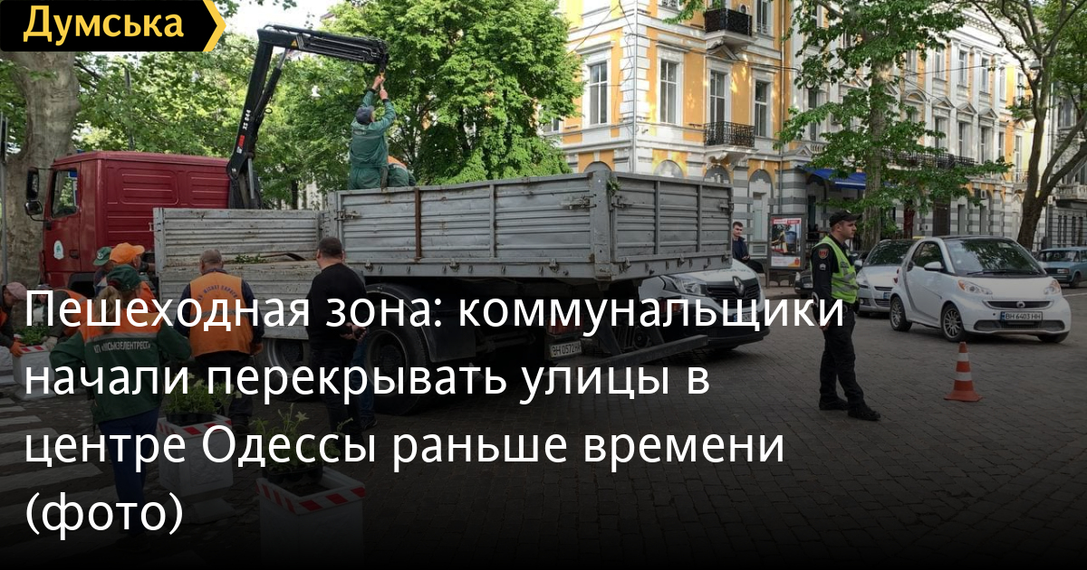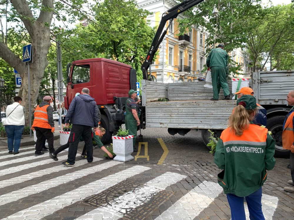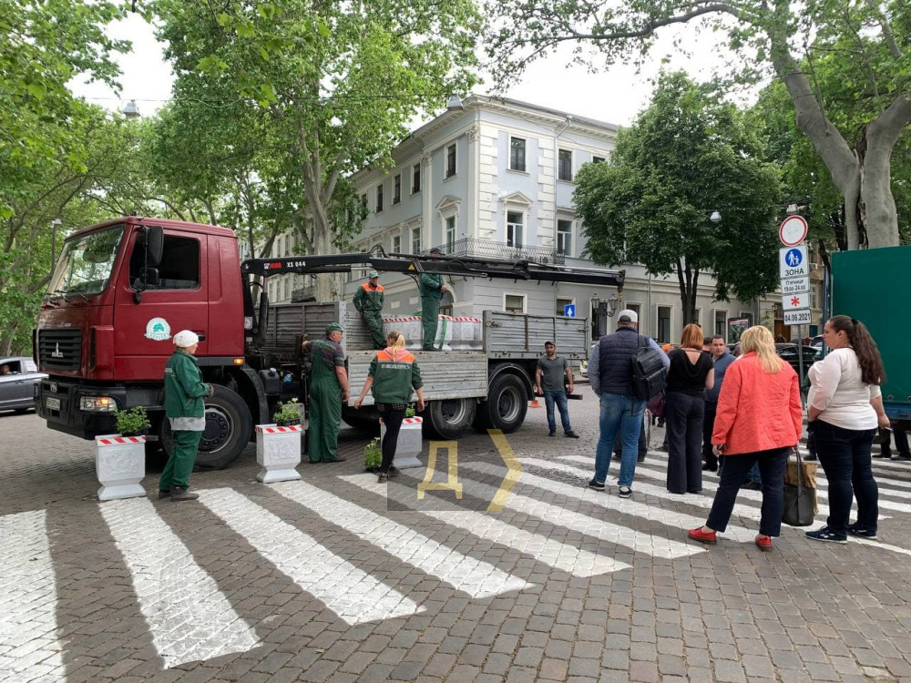 Сотрудники КП «Горзелентрест» начали ставить вазоны на перекрестках, на границах пешеходной зоны, которая начнет действовать в 19:00.