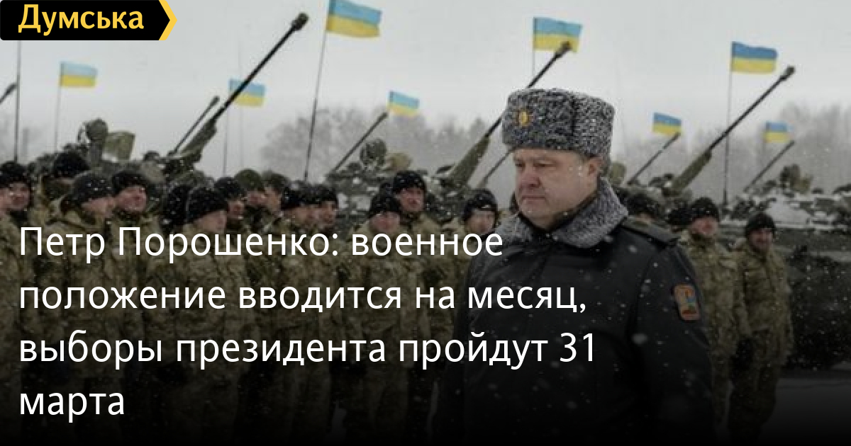 Президент Украины Петр Порошенко решил ввести военное положение всего на 30 дней, а не на 60, как рекомендовал ему Совет национальной безопасности и обороны.