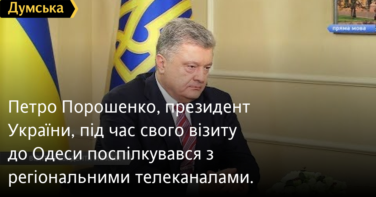 Петро Порошенко, президент України, під час свого візиту до Одеси поспілкувався з регіональними телеканалами.