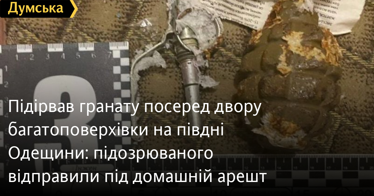 Підірвав гранату посеред двору багатоповерхівки на півдні Одещини: підозрюваного відправили під домашній арештЧоловіка, який підірвав гранату посеред двору багатоповерхівки в Рені, помістили під домашній арешт. Доля трьох його товаришів по чарці залежить від результатів низки експертиз, повідомили в поліції регіону. Про вибух у дворі висотки повідомила жителька, яка в ній мешкає. Поліцейські з'ясували, що до події причетний 37-річний чоловік. Він прийшов до 43-річного товариша, який зі своїм 70-річним батьком та ще одним 47-річним гостем пили та святкували. Під час застілля фігурант взяв гранату, за попередніми даними, РГД-5, вийшов з нею на вулицю і підірвав. На щастя, від вибуху небезпечного предмета ніхто не постраждав. Залишки від частин гранати поліцейські виявили й вилучили на місці її підриву. Прибувши на місце, правоохоронці помітили, що з кишені 47-річного чоловіка, який був у гостях у батька з сином, як і той, що підірвав боєприпас, виглядає щось схоже на ще одну гранату РГД-5. Аби вилучити її, викликали вибухотехників. А в квартирі, де четверо святкували, знайшли ще два корпуси, попередньо, гранати Ф-1 та запали до них, а також паперовий згорток і банку із зеленою та подрібненою рослинною речовиною, схожою на канабіс, та зіп-пакет із порошкоподібною речовиною білого кольору. Слідчі розпочали два провадження за статтею носіння, зберігання, придбання бойових припасів без передбаченого законом дозволу (ч. 1 ст. 263 КК), а також по одному провадженню за статтею хуліганство (ч. 1 ст. 296 КК), незаконне виробництво, виготовлення, придбання, зберігання, перевезення чи пересилання наркотичних засобів, психотропних речовин або їх аналогів без мети збуту (ч. 1 ст. 309 КК). Чоловіку, у якого з кишені вилучили гранату, вже повідомили про підозру у носінні, зберіганні, придбанні бойових припасів без передбаченого законом дозволу. Суд обрав підозрюваному запобіжний захід у вигляді домашнього арешту. Санкція статті передбачає покарання у вигляді позбавлення волі на строк від трьох до семи років. Надалі в ході слідства правоохоронці встановлюватимуть походження заборонених предметів та речовин, кому вони належать та з якою метою зберігалися. Питання щодо правової кваліфікації та повідомлення іншим чоловікам про підозру будуть вирішуватися після проведення експертиз та інших слідчих дій. СМЕРТЬ РОСІЙСЬКИМ ОКУПАНТАМ! Помітили помилку? Виділяйте слова з помилкою та натискайте control-enter |