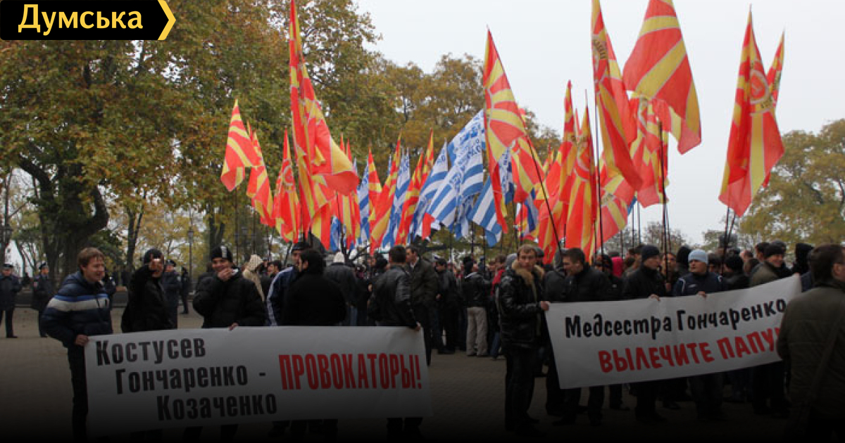 Сегодня в Одессе, в 11 утра, началось очередное заседание исполнительного комитета одесского горсовета, и опять под зданием мэрии митинговали сторонники и противники городских властей. На сей раз под стенами муниципалитета собрались активисты «Свободной Одессы» и «Комитета оборона Одессы» (около 100 человек), и их противники — такое же количество представителей рынков «Северный» и «Куяльник», выступающих против утверждения исполкомом новых правил торговли на рынках города. У прогурвицевских объединений, как и следовало ожидать, появился новый повод для поддержки городских властей — абсолютно незаконное выселение оппозиционных телекомпаний «АРТ» и «ГРАД». Поэтому студенты, стоящие с флагами «Свободной Одессы», пританцовывали под зажигательную дискотечную музыку и держали плакаты, обвиняющие «ГРАД» и «АРТ» в провокациях и «грязой политике». СМЕРТЬ РОСІЙСЬКИМ ОКУПАНТАМ! Помітили помилку? Виділяйте слова з помилкою та натискайте control-enter