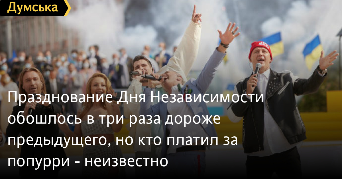 Торжества на Софиевской площади обошлись в 881 тыс. гривен, а на Михайловской — в 528 тыс. гривен. В министерстве заверили, что их не привлекали к подготовке концертной программы — попурри «Музыкальная история Независимости». И ведомство не выделяло на это финансы.