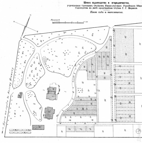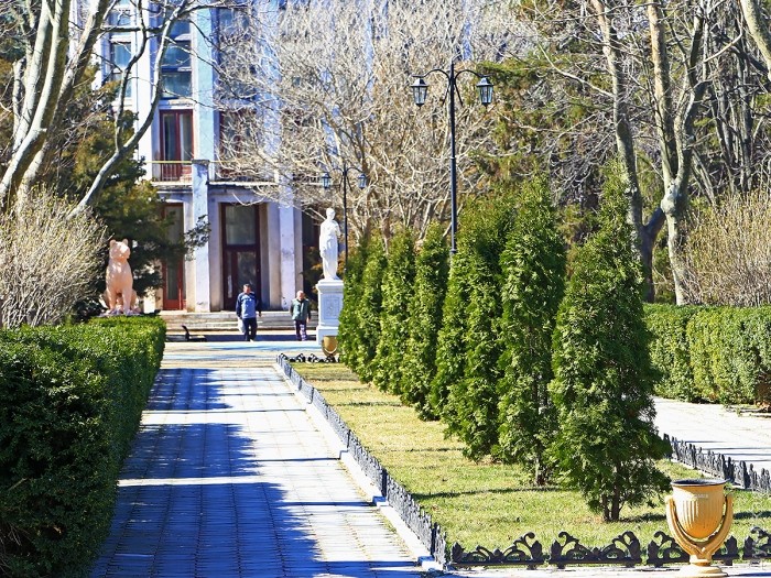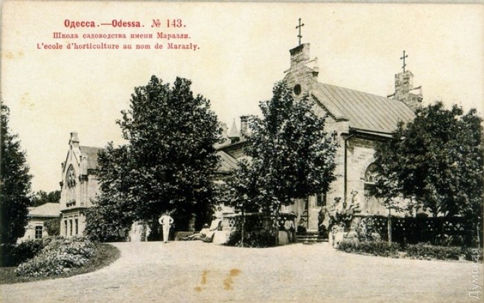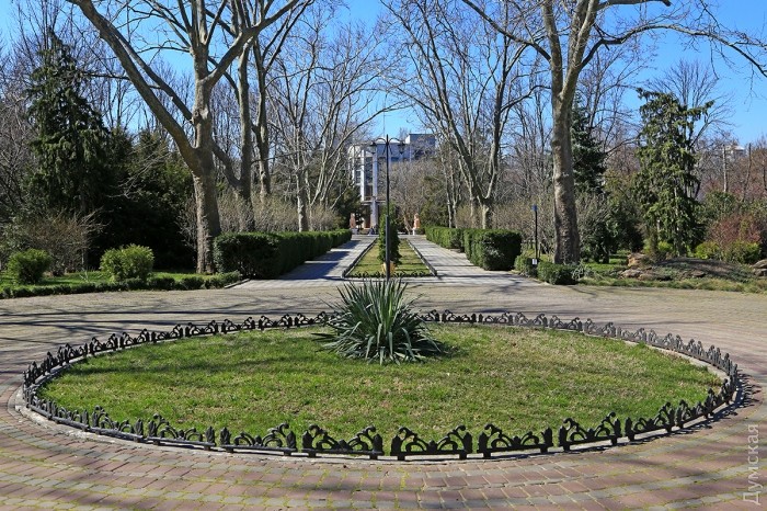 До создания чекистского санатория в 1928 году эту территорию занимала Школа садоводства и огородничества (комплекс ее зданий был построен в 1886-1889 годах), основанная при содействии Григория Маразли и его двоюродного племянника Георгия Фредерикса, чей особняк находится тут же. Кстати, скульптуры льва и львицы, украшающие ныне Горсад, раньше стояли в этом парке, их дубликаты охраняют его по-прежнему.