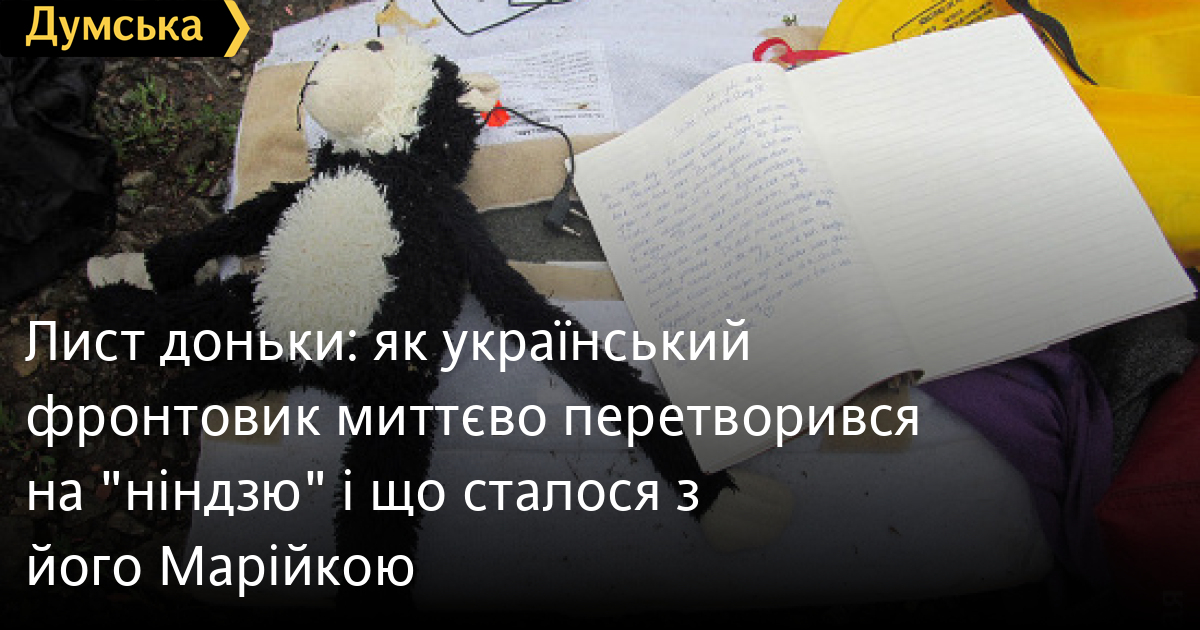 «Ніхто з нас ніколи не просив Каа не читати листа Машеньки. Усі, і комбат, знали, що його донька Машенька померла півроку тому, ще на початку великої війни, в Маріуполі від прильоту ракети. Семирічна дівчинка гуляла з мамою у дворі, прилетіло. Дівчинці відірвало ноги, прожила після цього ще кілька хвилин. Поховали її просто у дворі багатоповерхівки. Дружина Каа була важко поранена, але її вдалося вивезти рідним на підконтрольну територію. Після одужання вона надіслала чоловікові посилку на фронт — з фотографією могили Машеньки. А ще знайшла її останній лист татові. Машенька ж тільки писати навчилася »