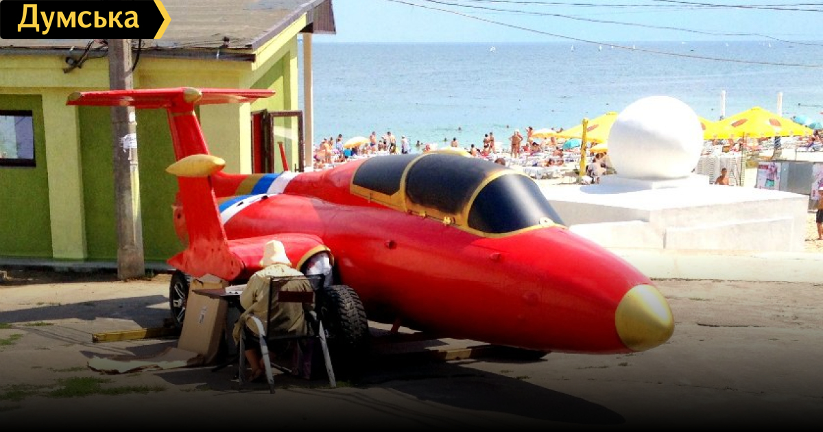 Переоборудованный под мобильную точку по разливу пива чешский учебно-тренировочный реактивный самолет L-29 обосновался на Ланжероне.