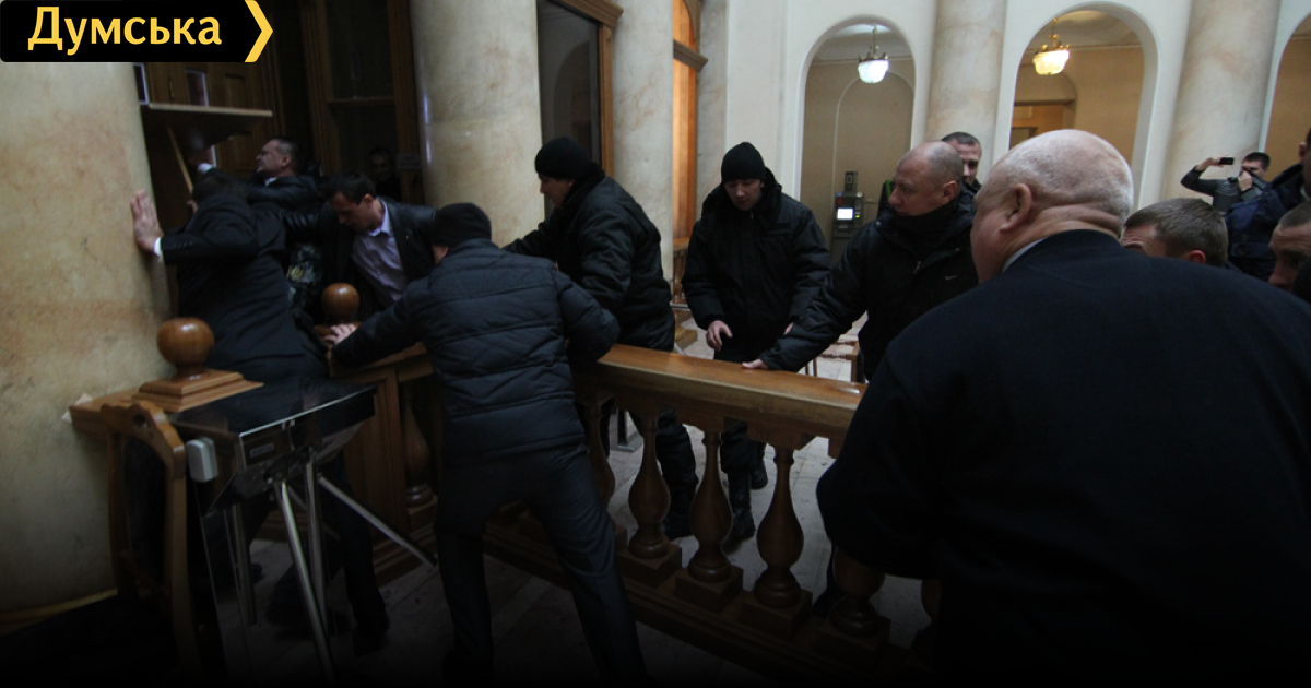 Корреспондент «Думской», который находится сейчас в фойе здания Одесского горсовета, уточняет ранее опубликованную нами информацию. Активисты «Свободы» так и не смогли прорваться в мэрию, но выломали внешнюю дверь горсовета. Их атаку отбили сотрудники милиции и частная охрана муниципалитета, применив огнетушители и пожарные брандспойты.