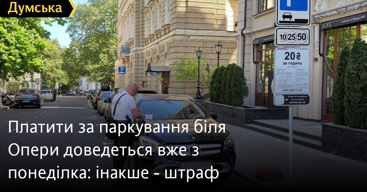Платити за паркування біля Опери доведеться вже з понеділка: інакше — штрафПарковка в провулку Чайковського, що біля одеської Опери, стане платною вже в понеділок, 6 травня. Про це повідомила пресслужба мерії. Введення плати за паркування в цьому місці пов'язане зі збільшенням попиту на паркомісця, що, своєю чергою, зумовлено відкриттям для публіки Стамбульського та Грецького парків. Вартість паркування — 20 грн/год у робочий час. У вихідні, рано-вранці та ввечері стоянка безкоштовна. При цьому залишати машини можна тільки на непарному боці вулиці — біля театру. СМЕРТЬ РОСІЙСЬКИМ ОКУПАНТАМ! Помітили помилку? Виділяйте слова з помилкою та натискайте control-enter Новини по цій темі: 16 серпня 2025: Здобули: після демонтажу шлагбаумів ситуація на одеському узбережжі близька до критичної (фото) 22 серпня 2024: Одеський парк Перемоги збираються обнести платними парковками |