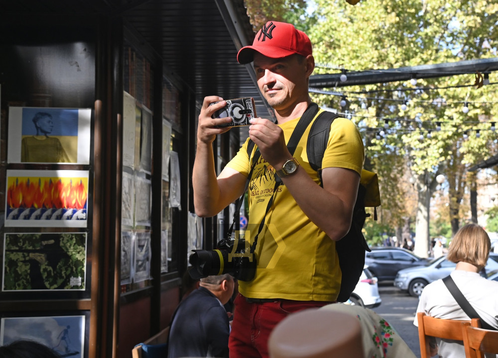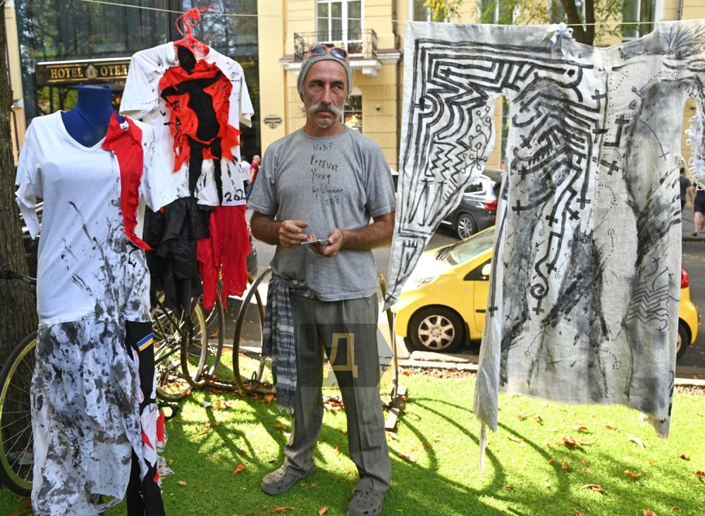 «З березня системно роблячи виставки українських художників, ставили перед собою задачу інформувати громадян про розвиток сучасного мистецтва, яке в часи війни дихає синхронно з країною, — каже художник та дизайнер Володимир Уманенко. — Сьогодні, відкриваючи 26-ту акцію, розумів, що маю право показати свою рефлексію на події, і в колекції суконь були представлені роботи 2013, 2014 і 2022 року. Всі вони — мої віддзеркалення станів довкілля, болі, люті, любові».