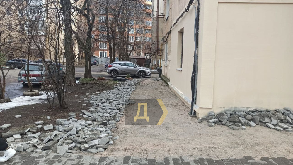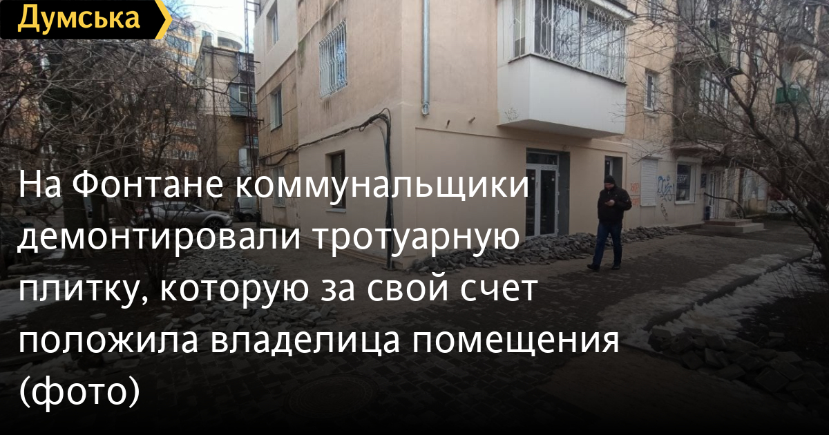Коммунальщики сорвали тротуарную плитку на Фонтанской дороге, 15, которую недавно за свой счет уложила владелица коммерческого помещения Лилия Киреева.