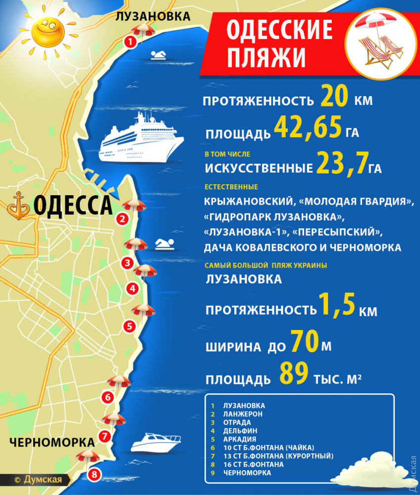 И снова наша постоянная рубрика «Десять фактов о…», в которой мы рассказываем всякие интересности о нашей с вами Одессе. На сей раз поговорим о знаковом элементе городской среды, который без преувеличения является главным магнитом для туристов, а также кормильцем для многих горожан – об одесских пляжах. Сколько их у нас? Какой самый большой? Сколько приносит бюджету сдача их в аренду? Ответы на эти и другие вопросы – в новом иллюстрированном материале «Думской».