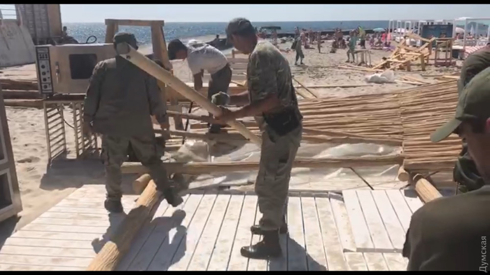 Как сообщил «Думской» управляющий пляжным комплексом White Beach club Odessa (10-я станция Большого Фонтана) Олег Павленко, утром на территорию пляжа ворвались около четырех десятков людей в камуфляже, представляющих департамент муниципальной безопасности и КП «Муниципальная варта».
