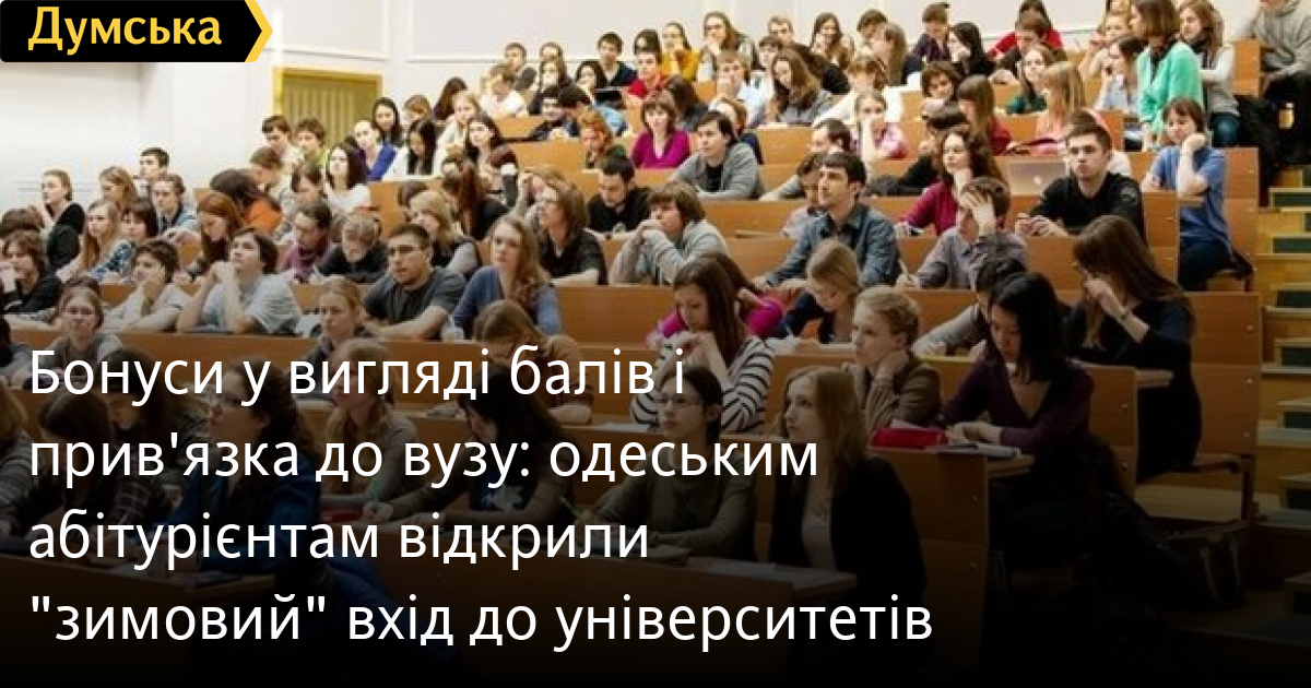 Бонуси у вигляді балів і прив'язка до вишу: одеським абітурієнтам відкрили «зимовий» вхід до університетівПочати навчання в університеті та отримати до 15 додаткових балів до результатів літнього вступу зможуть одеські абітурієнти вже цієї зими. Три одеські виші приєдналися до нового проєкту Міністерства освіти — так званого «нульового курсу», на якому кілька місяців готують до університетського формату. Брати участь у програмі поки що зголосилися тільки три виші: Одеський національний університет ім. Мечникова (ОНУ), Одеський національний технологічний університет (ОНТУ) і Південноукраїнський національний педагогічний університет ім. Ушинського (ПНПУ). Перші два вже зареєструвалися, третій на етапі проходження узгоджень. Як пояснив заступник міністра освіти Микола Трофименко, це місток між школою і першим курсом кілька місяців цілеспрямованої підготовки до національного мультипредметного тесту. Необхідність нововведень у міністерстві пояснюють, в основному, тяготами воєнного часу. Не всі абітурієнти мали можливість повноцінно навчатися: хтось виїхав за кордон, у когось не було можливості займатися офлайн, а у когось через відсутність електроенергії й онлайн. «Зимовий вступ» розрахований насамперед на пільговиків, оплачувати навчання яких бере на себе держава. В першу чергу це молодь з тимчасово окупованих або прифронтових територій, яка не змогла вступити влітку, військовослужбовці, ветерани та ті, хто повертається з полону або демобілізується після завершення основного набору, а також абітурієнти, які не склали тест з об'єктивних причин (наприклад, через вимушений виїзд за кордон або перебої зі зв'язком і безпекою під час тестування). Однак насправді скористатися цією опцією зможе кожен, але за гроші. Кожен виш сам визначає суму, проте вона не повинна перевищувати 3 тис. гривень. Учасники «нульового курсу» готуватимуться до вступу з трьох предметів: української мови, математики та профільного предмета — виходячи зі спеціальності, яку хоче отримати абітурієнт. Як повідомив «Думській» директор центру профорієнтаційної роботи та прийому на навчання ОНТУ Денис Попков, наразі триває набір груп «зимового навчання». Заняття розпочнуться до кінця січня. Заняття будуть проводитися в денний час, орієнтовно в проміжку між 16 і 19 годинами, так, щоб не перетинатися зі шкільними уроками. Ми плануємо, що у дітей буде дві-три пари на тиждень», — зазначив він. За підсумками навчання абітурієнт отримає 15 балів, які зможе додати до результатів свого літнього вступу. Правда, використовувати їх можна буде тільки в тому виші, в якому проходив «нульовий курс». «За великим рахунком університет особливо нічого не виграє від цього, проте отримує можливість працювати з уже більш якісною, підготовленою абітурієнтом. Ну і все-таки якийсь момент прив'язки абітурієнта теж є, оскільки це змушує людину заздалегідь зробити вибір професії та місця вступу», каже Денис Попков. Ректор Південноукраїнського національного педагогічного університету Андрій Красножон вважає ідею «зимового вступу» правильною і необхідною, оскільки вона дозволить ще краще відібрати абітурієнтів. «Ви знаєте, я останні чотири роки щоразу з жахом чекаю вступних кампаній, оскільки постійно очікую якоїсь демографічної або соціально-економічної ями і спаду інтересу д