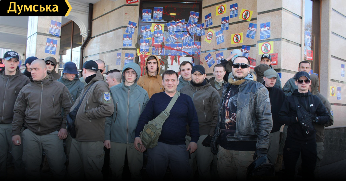 Больше похоже, что это те самые титушки, которые напали на митинг у стен ОГА 19-го февраля 2014г. Почерк одинаковый.