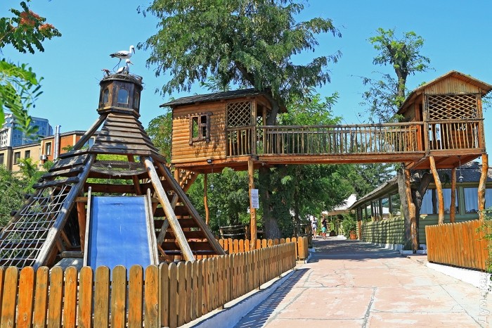 Отсюда же по хорошей каменной лестнице, недавно восстановленной силами одного заведения, можно спуститься прямо на пляж. От дачи Гагариных, мимо армянской церкви и «Арарата» всего через пять минут можно оказаться у самой кромки воды.