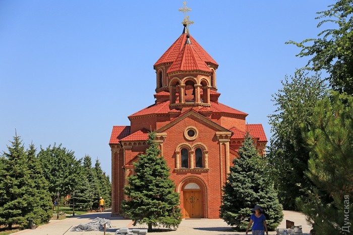 По другую сторону жилой «подковы» расположился так называемый армянский городок, центром которого стала Армянская апостольская церковь. Первое здание церкви, построенное в 1840 году на углу Базарной и Екатерининской, сильно пострадало во время Второй мировой войны от бомбежек. В 1952 году его вообще разобрали, а на месте храма построили жилой дом. И только в 1993 году состоялось освящение и закладка фундамента нового храма на Гагаринском плато в Аркадии. Его строительство было закончено в 1995 году.