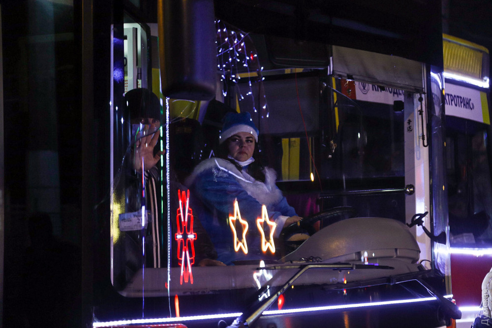 К слову, в честь праздника все водители облачились в костюмы дедов Морозов и Снегурочек.