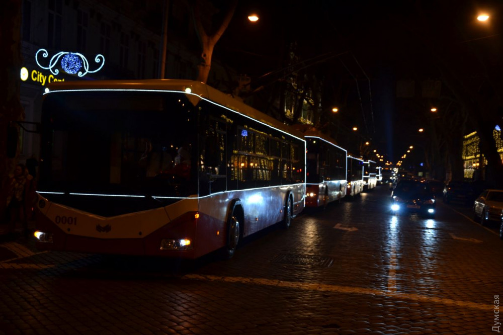 Как передает корреспондент «Думской», в нынешнем году колонна украшенных праздничными гирляндами троллейбусов увеличилась на одну единицу – к БКМ, «Богдану», «Троллзе», «Шкоде», ЗИУ-9, ЮМЗ обычному и ЮМЗ-«гармошке» прибавился электробус, собранный на базе «Шкоды». Кроме того, в состав колонны вошли КамАЗ техпомощи и вышка с бригадой электромонтеров. К тому же, колонну сопровождали две патрульные машины. К параду также привлекли сотрудников службы безопасности КП «ОГЭТ», которые по маршруту колонны перекрывали движение для автотранспорта.