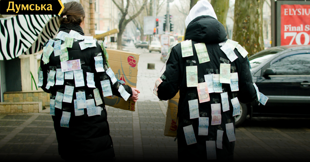 По Одессе разгуливали люди в костюмах из денег