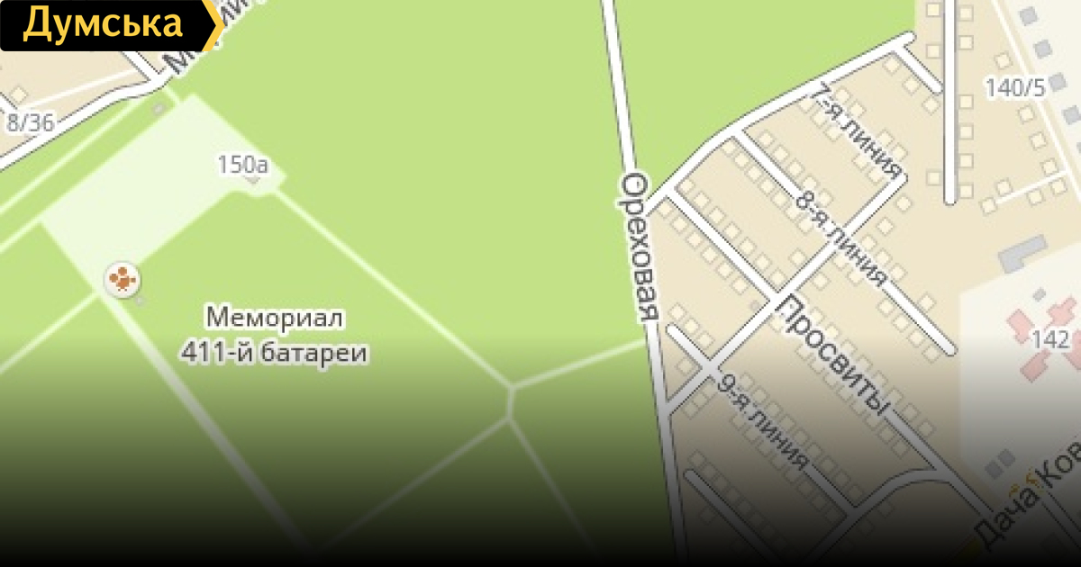 Вдоль низа надписи «Марии Демченко» до поворота на Ореховую, таки с карманами, бордюрными камнями и свежим асфальтом.