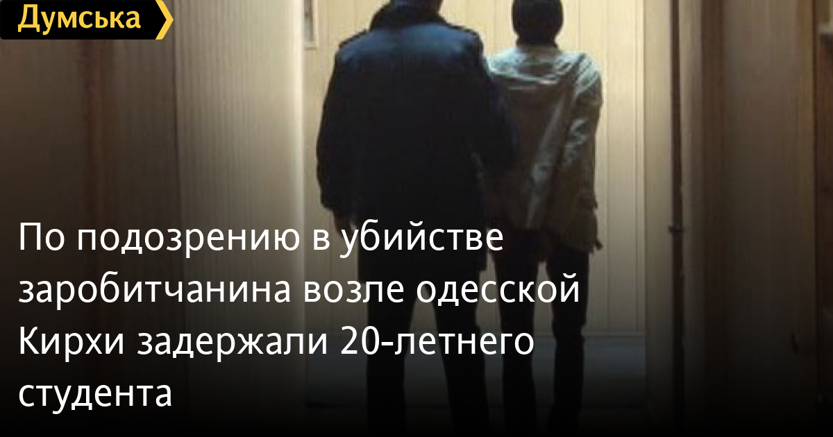По подозрению в убийстве заробитчанина возле одесской Кирхи задержали 20-летнего студентаВ убийстве мужчины, тело которого было обнаружено в понедельник на углу улиц Дворянской и Новосельского, сознался студент одного из одесских вузов. Об этом сообщает пресс-служба облУВД. В милиции уточнили, что погибший – 26-летний житель Черновицкой области. Он приехал в Одессу на заработки. Как установило следствие, мужчина был убит во время конфликта, произошедшего около пяти часов утра 18 ноября возле студенческих общежитий. Он шел вместе со знакомым по Новосельского, когда у него зазвонил телефон. Аппарат был неисправен, работал с перебоями, а в момент разговора и вовсе выключился. «Именно поэтому мужчина разозлился и громко выругался нецензурной бранью. Этот момент стал для него роковым. Как раз в это время у одного из общежитий находилась компания студентов. Молодые люди только вернулись с дискотеки, где праздновали День студента. Их беседу резко прервали нецензурные слова прохожего. Один из студентов принял их в свой адрес», — рассказали в милиции. СМЕРТЬ РОССИЙСКИМ ОККУПАНТАМ! Заметили ошибку? Выделяйте слова с ошибкой и нажимайте control-enter |