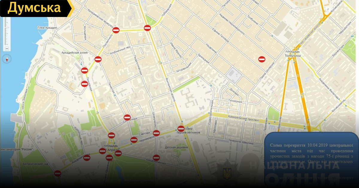 Кроме того, с 9:30 до 13:00 будет перекрыта площадь Десятого апреля и прилегающие к ней улицы — проспект Шевченко (от улицы Семинарской), Генуэзская (от Гагаринского плато), Черняховского (от улицы Говорова), Академическая (от улицы Говорова до Курортного переулка).