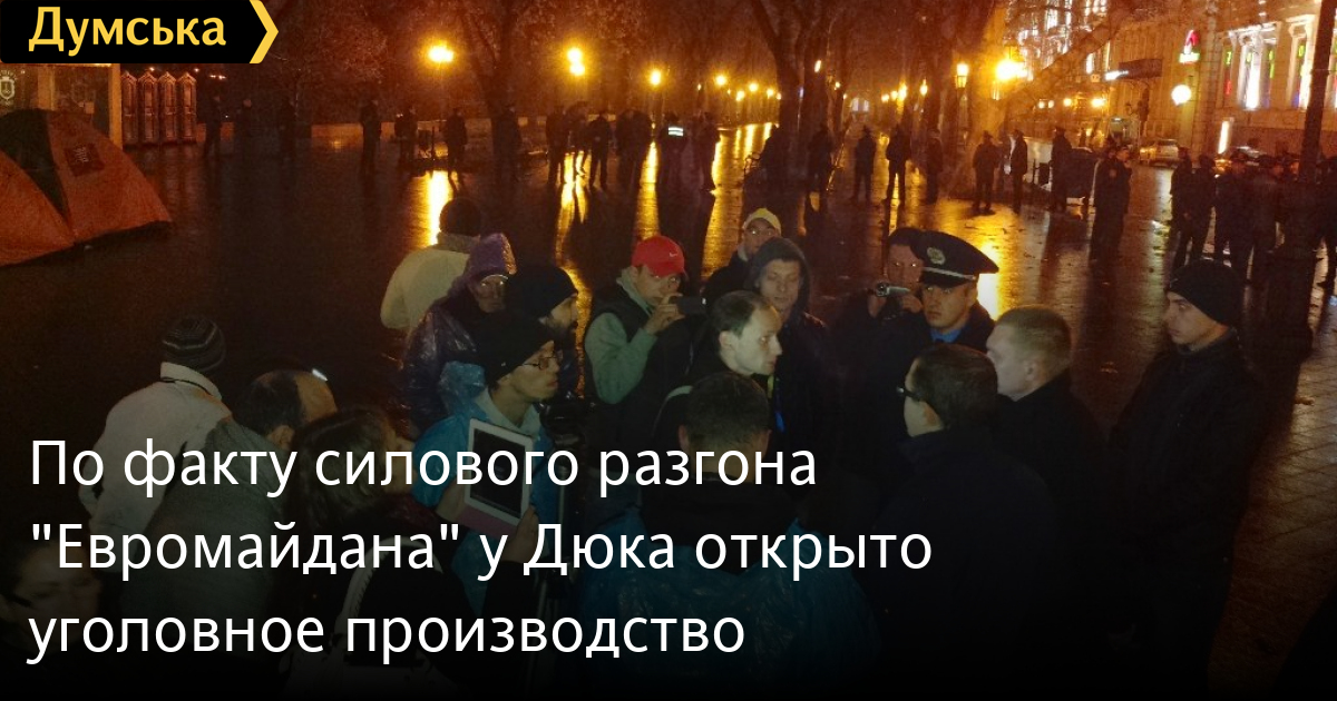 Началось расследование уголовного дела по признакам превышения власти (ст. 365 УК) и незаконного задержания (ст. 371 УК), совершенных сотрудниками милиции при демонтаже палаточного городка «Евромайдана» на Приморском бульваре.