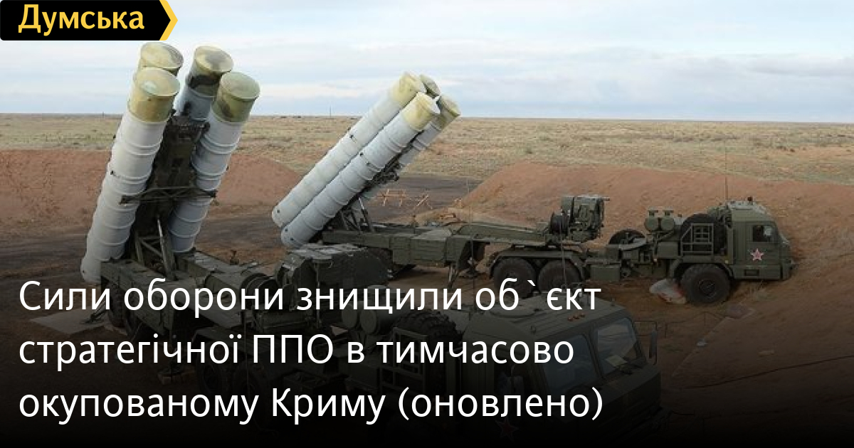 ОНОВЛЕНО ОБ 11:12. Управління стратегічних комунікацій апарату головнокомандувача Збройних сил України підтвердило, що українські захисники успішно вразили об'єкт системи ППО на західному березі тимчасово окупованого Криму.