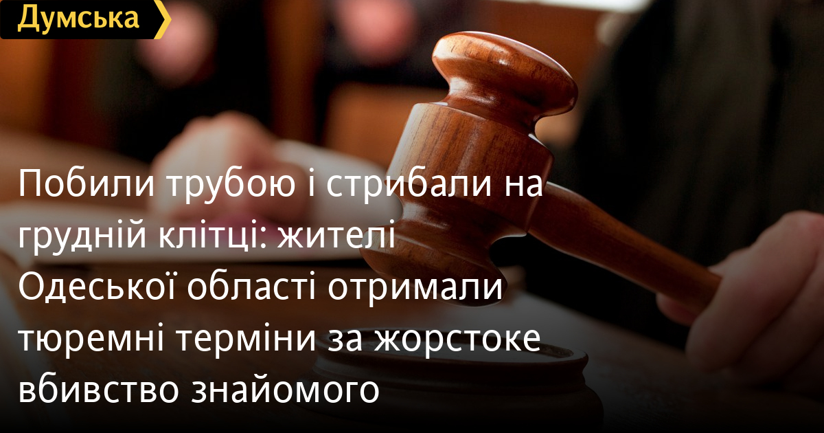Побили трубою і стрибали на грудній клітці: жителі Одеської області отримали тюремні терміни за жорстоке вбивство знайомогоВісім і п'ять років в'язниці отримали двоє мешканців Одеської області за скоєне спільно жорстоке побиття чоловіка, внаслідок якого потерпілий помер. У матеріалах слідства зазначено, що наприкінці грудня 2022 року, випивши чотири склянки горілки, чоловіки прийшли до знайомого з Шевченкового, щоб розібратися, чому той нібито погрожував сокирою доньці одного з підсудних. Словесна перепалка швидко переросла в бійку, під час якої потерпілого побили залізним держаком від сапки, руками і ногами, а потім один із фігурантів пострибав у нього на грудній клітці. Потерпілий отримав численні травми, серед яких крововиливи в мозок, численні переломи ребер, розрив нирок. Помітили помилку? Виділяйте слова з помилкою та натискайте control-enter |