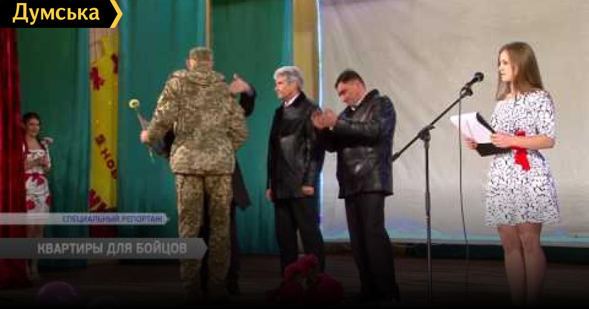 С визитом приехал глава Одесского областного совета. Анатолий Урбанский, он вручил ключи от квартиры двум военным из зоны АТО.