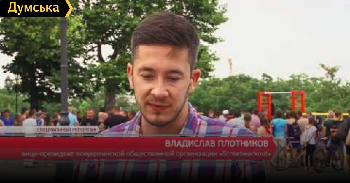 Из Винницы в Одессу для соревнований по Workout. Юные украинцы показали, как достичь успеха в уличном спорте. Шестнадцатилетний Анатолий Базюк рассказывает, что ходит на тренировки дважды в неделю. Занимается он на уличных площадках. СМЕРТЬ РОСІЙСЬКИМ ОКУПАНТАМ! Помітили помилку? Виділяйте слова з помилкою та натискайте control-enter Думская ТВ. Сюжеты: