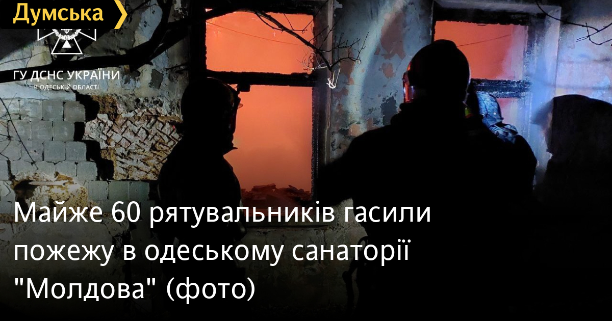 Майже 60 рятувальників гасили пожежу в одеському санаторії «Молдова»Масштабна пожежа сталася в санаторії «Молдова», що розташований на вулиці Посмітного в Одесі, рано вранці 28 листопада. Як повідомили у пресслужбі ДСНС Одеської області, інформація про займання на території недіючого санаторію надійшла о 04:31. Рятувальники, які прибули на виклик, встановили, що вогонь повністю охопив одноповерхову будівлю. Вже о 05:58 пожежу на площі 200 кв.м. було ліквідовано. Загиблих та постраждалих немає. Причина займання встановлюється. До гасіння вогню залучалися 12 одиниць техніки та 58 рятувальників. Помітили помилку? Виділяйте слова з помилкою та натискайте control-enter Новини по цій темі: 9 жовтня 2025: Нічний удар по Одеській області: постраждали п'ятеро людей, понад 30 тисяч абонентів залишилися без світла 19 серпня 2025: У будівлі коледжу в центрі Одеси виявили труп невідомого 10 червня 2025: Масштабна пожежа у центрі Одеси: ймовірні винуватці спустилися по дереву з третього поверху та намагалися втекти (фото, відео, оновлено) 10 червня 2025: Одесу атакують дрони: дісталося пологовому та житловим будинкам і станції швидкої допомоги (оновлюється, фото) |