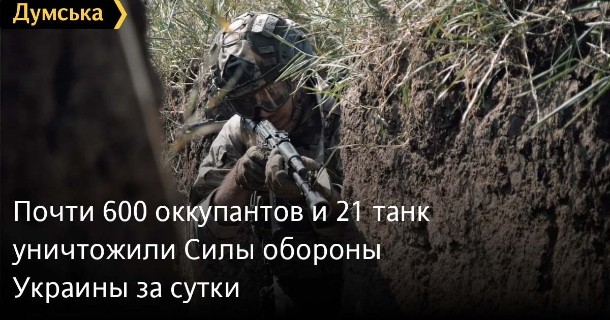 Майже 600 окупантів і 21 танк знищили Сили оборони України за добу580 російських загарбників полягли в Україні 7 жовтня. Загальні втрати окупантів від початку повномасштабного вторгнення — 282 тисячі 280 солдатів і офіцерів. За даними Генерального штабу Збройних сил України, також наші захисники вчора спалили 21 танк (4821 за весь час), 21 бойову броньовану машину (9123), 17 артилерійських установок (6705), установку ППО (542). Знищено 38 вантажівок і автоцистерн (9111), три одиниці спецтехніки (959). ППО збила п'ять ворожих безпілотників оперативно-тактичного рівня (5190). СМЕРТЬ РОСІЙСЬКИМ ОКУПАНТАМ! Помітили помилку? Виділяйте слова з помилкою та натискайте control-enter |