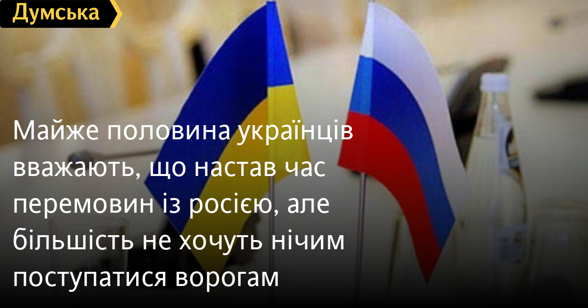 Майже 44% українців вважають можливим початок мирних переговорів з росією. При цьому 35% категорично проти, а ще 21% поки що не визначилися.