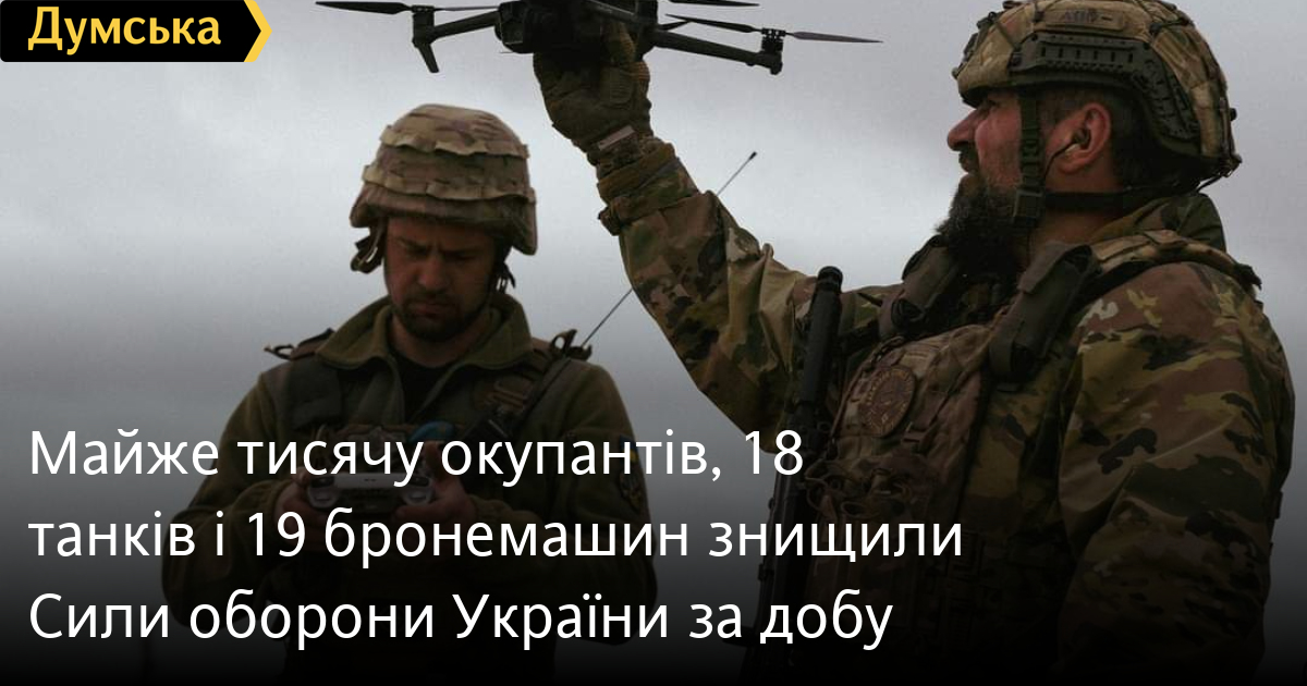 За даними Генерального штабу Збройних сил України, також учора наші воїни підбили 18 танків (5081 за весь час), 19 бойових броньованих машин (9631), 13 вантажівок і автоцистерн (9404), одну одиницю спецтехніки (991).