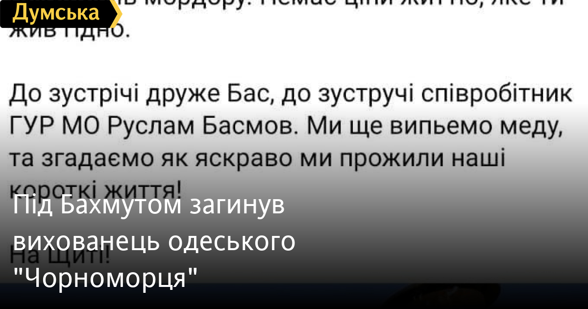 19-річний одесит Руслан Басмов поліг смертю хоробрих у бою під Бахмутом Донецької області. Про це повідомили близькі військовослужбовця. До повномасштабної війни він був вихованцем одеського ФК «Чорноморець», грав на позиції воротаря. Басмов воював у лавах одного з підрозділів Головного управління розвідки Міністерства оборони України. Вічна пам'ять полеглим за свободу і незалежність України! СМЕРТЬ РОСІЙСЬКИМ ОКУПАНТАМ! Помітили помилку? Виділяйте слова з помилкою та натискайте control-enter |