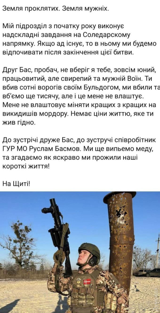 19-річний одесит Руслан Басмов поліг смертю хоробрих у бою під Бахмутом Донецької області.
