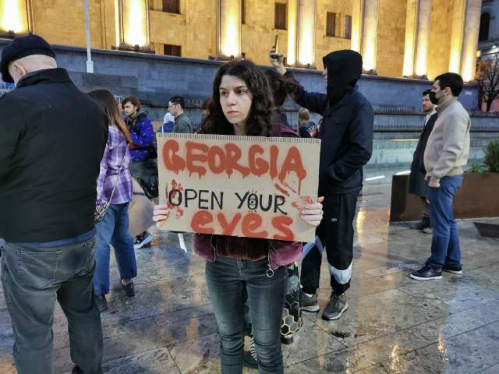 Одна из участниц акции держала в руках плакат с надписью «Грузия, открой глаза».