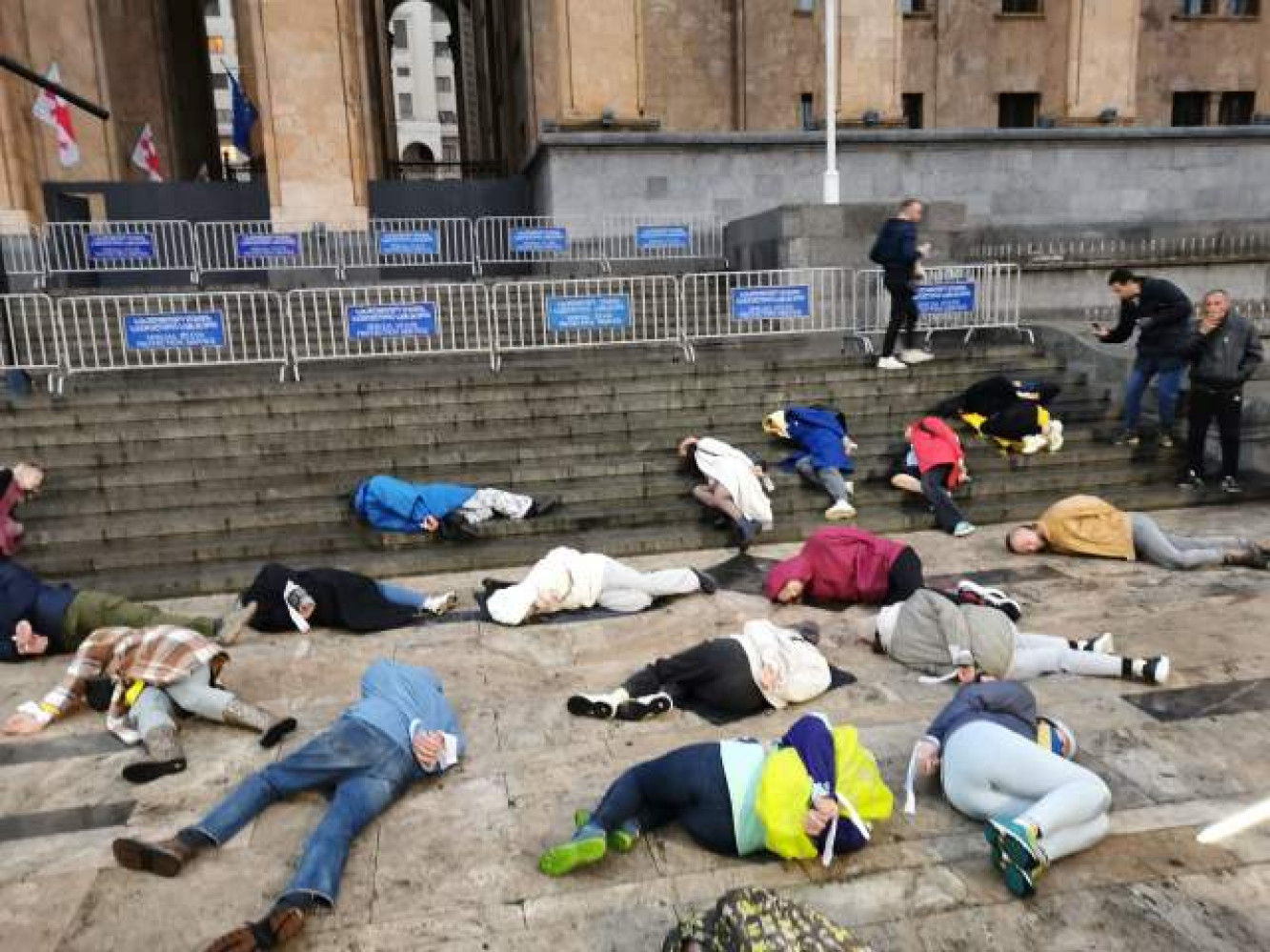 Под грузинским парламентом прошла молчаливая акция против зверств российских нацистов в УкраинеДесятки активистов провели акцию под стенами грузинского парламента в Тбилиси. Люди легли на землю со связанными руками, чтобы выразить свой молчаливый протест против зверств, которые творят российские оккупанты в захваченных украинских городах. Об этом сообщает Publika. Одна из участниц акции держала в руках плакат с надписью «Грузия, открой глаза». Напомним, ранее грузинское правительство отказалось присоединиться к санкциям против россии, которые были введены после полномасштабного вторжения страны-агрессора на нашу территорию. Отказ от санкций премьер-министр Грузии Ираклий Гарибашвили объяснил тем, что это навредит интересам его страны. СМЕРТЬ РОСІЙСЬКИМ ОКУПАНТАМ! Помітили помилку? Виділяйте слова з помилкою та натискайте control-enter |