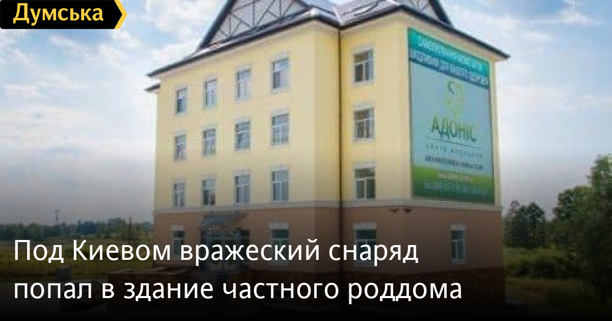 Снаряд российских оккупантов попал в здание частного роддома сети Adonis под Киевом. Об этом в Facebook сообщил директор этой сети медучреждений Виталий Гирин. «Все спрашивают, что с роддомом. Спасибо за поддержку. В роддом попал снаряд, повреждения большие, но здание стоит», — написал он. По словам Гирина, всех людей успели эвакуировать из поврежденного здания. Люди в безопасности. «Главное – не надо сейчас ехать, кого-то забирать», — добавил он. СМЕРТЬ РОССИЙСКИМ ОККУПАНТАМ! Заметили ошибку? Выделяйте слова с ошибкой и нажимайте control-enter |