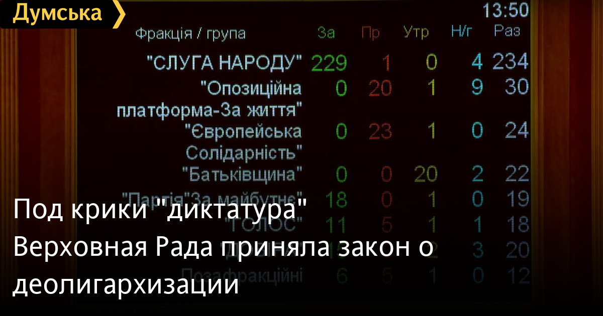 К чему этот бред? Для борьбы с зловжываням олигархами существуют такие конторы как АМКУ, этого достаточно(но не сейчас, т.к.эта должность у близкой к Зеленскому дамочки) чтобы устранить такое явление как монополии, нет монополий нет сверхприбыли, соответственно нет и лишних денег на карманных депутатов, влияния на экономику и политику, так нет надо придумывать велосипед с квадратными колесами в виде «закона об олигархах«и на нем вперед на второй срок, ну, ну..