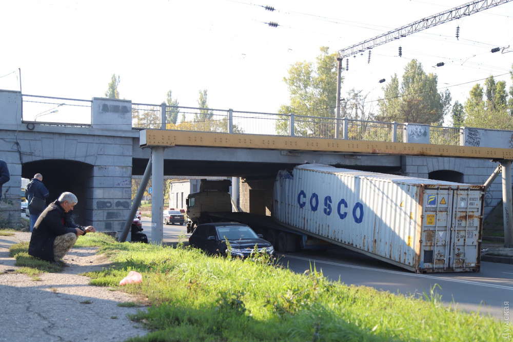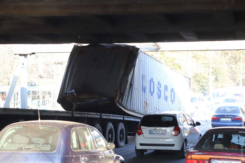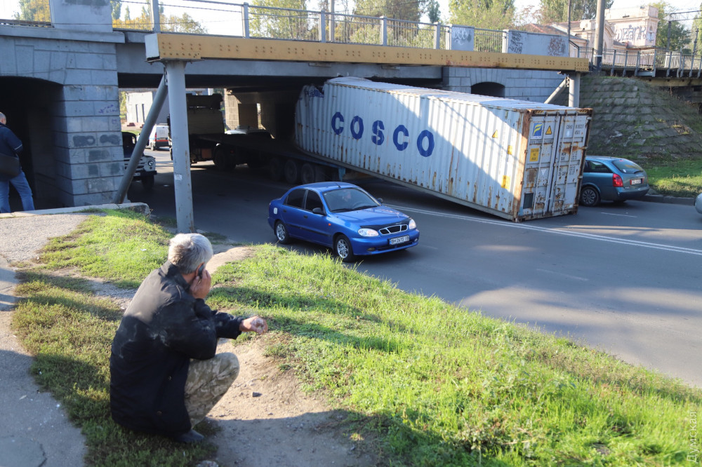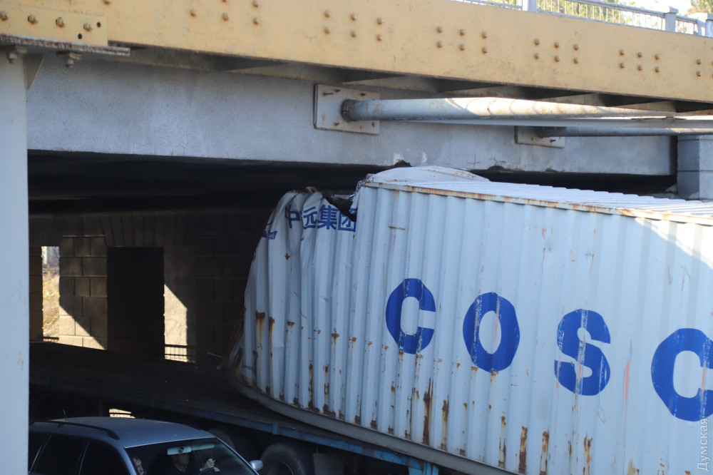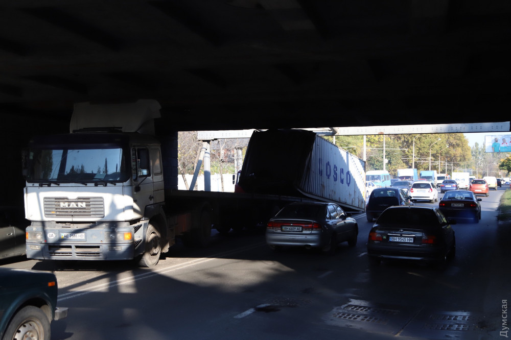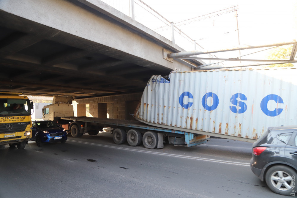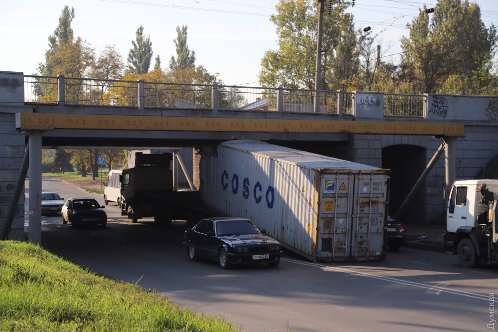 Ну и пару слов об аварии под мостом. Водитель дурак, гнал на фуре с закрепленным, 40-футовым, груженный контейнером и даже не сбавил скорость. Представляете себе силу удара, кабина вышла из под моста, сорвала крепёжные фитинги с носа и кормы контейнера и смяла его. Вывод один, поддомкратить мост на полметра-метр, это копеечные затраты, но просто никто не хочет этим заниматься. Тротуарная плитка дороже, у нас мэр такой.