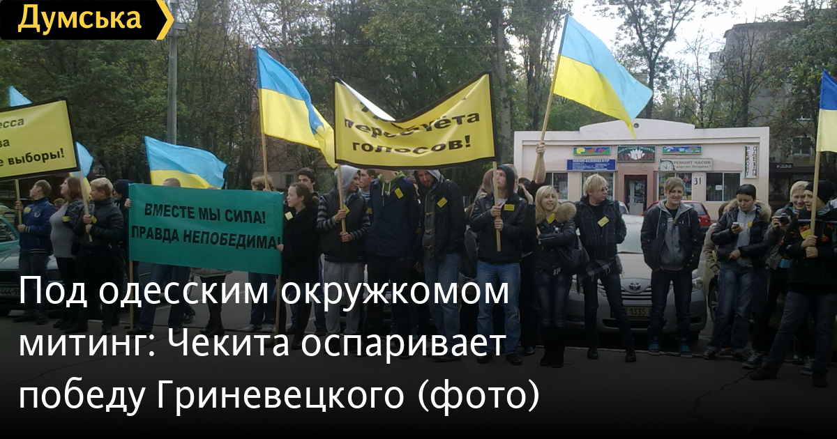 Как сообщает корреспондент «Думской», митинг начался в среду в полдень. Протестующие держат в руках плакаты «Одесса за честные выборы», «Вместе мы сила, правда непобедима» и «Требуем пересчета голосов».