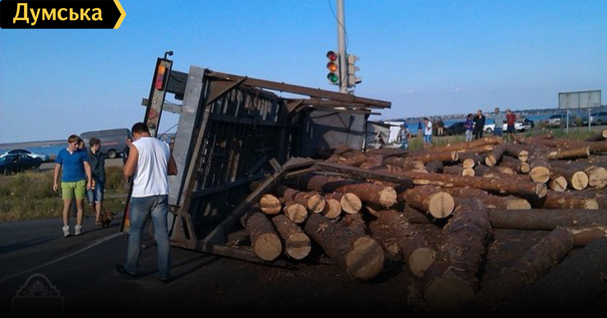 Фура, груженная бревнами, перевернулась под Одессой в воскресенье. Как сообщают очевидцы в паблике «Одесса как она есть», ДТП произошло около 16:30 на Объездной дороге, в районе поворота на Нати. Водитель ехал с горы, не заметил знак «50» и включенный недавно светофор.