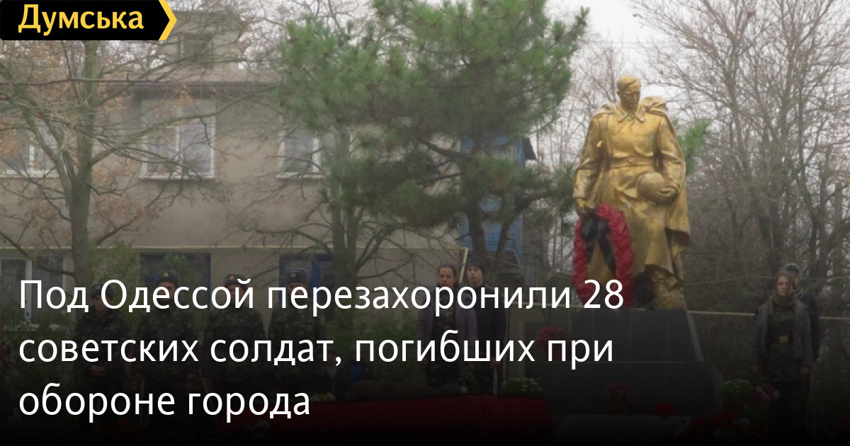 В селе Мирное Беляевского района Одесской области состоялось торжественное перезахоронение останков 28 советских воинов, погибших при обороне Одессы в августе-октябре 1941 года. Как сообщили в пресс-службе Одесской ОГА, поиски неучтенных захоронений в районе главного рубежа обороны Одессы с августа текущего года осуществляли представители ВОО «Закончим войну». В результате были найдены останки 28 советских воинов. Имена четырех из них удалось установить: Василий Маркович Савченко, Иван Яковлевич Збрицкий, Иван Петрович Майстренко и Александр Присяжный. Воинов перезахоронили в братской могиле, принятой под охрану государства как памятник истории. На церемонии присутствовали председатель сельсовета, глава Одесского филиала общественной организации «Закончим войну», а также военнослужащие ВС Украины и жители села. Сейчас поисковики продолжают работы по идентификации еще нескольких воинов. СМЕРТЬ РОССИЙСКИМ ОККУПАНТАМ! Заметили ошибку? Выделяйте слова с ошибкой и нажимайте control-enter |