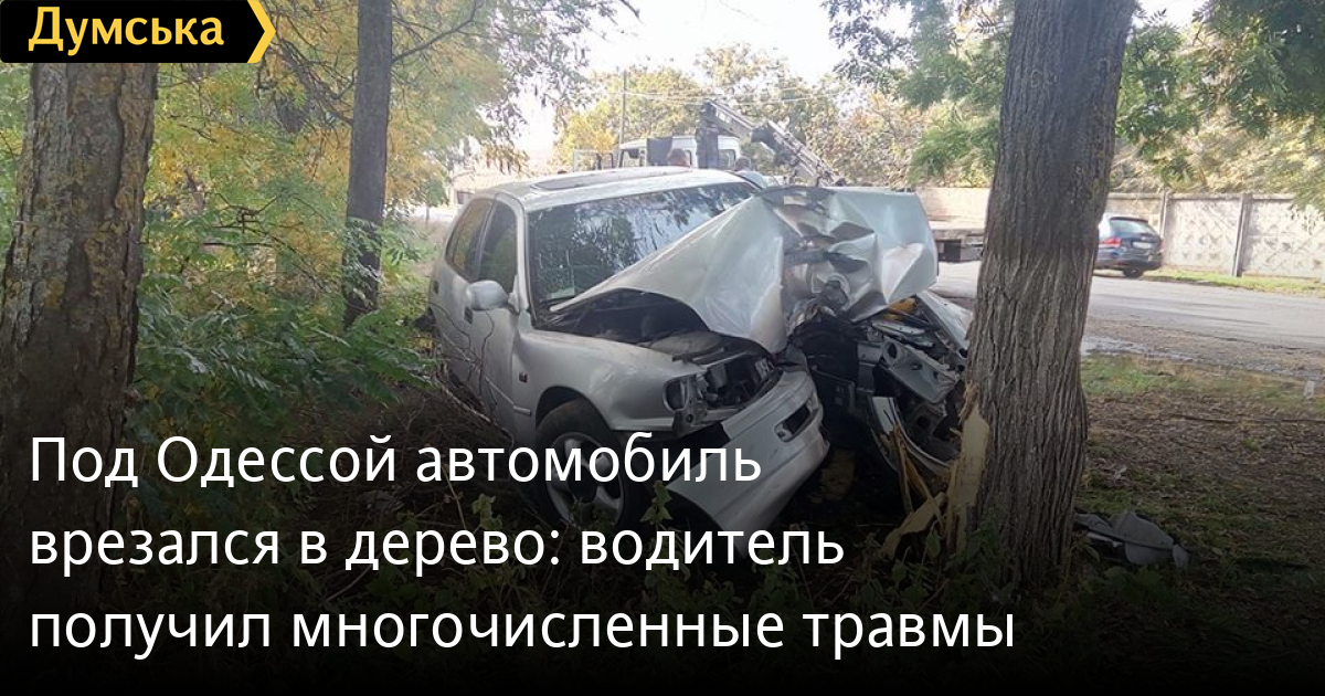 Под Одессой автомобиль врезался в дерево: водитель получил многочисленные травмы