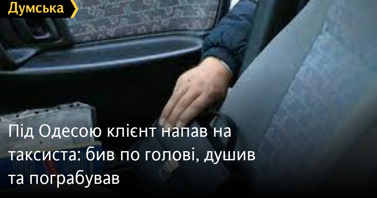 Під Одесою клієнт напав на таксиста: бив по голові, душив та пограбував38-річний одесит напав на таксиста, коли той віз його із села Степанівка в Кінне. За даними «Думської», пасажир ударив 60-річного водія Hyundai Accent рукою по голові та почав душити, потім схопив барсетку з грошима і документами й зник. Нападника затримали на околиці села Кінне. У нього вилучили барсетку (у ній виявилося 4,5 тис. грн, паспорт і права потерпілого та його мобільний), трос, скотч. Поліцейські почали досудове розслідування за статтею розбій, вчинений в умовах воєнного стану. Винному загрожує до п'ятнадцяти років за ґратами з конфіскацією майна. СМЕРТЬ РОСІЙСЬКИМ ОКУПАНТАМ! Помітили помилку? Виділяйте слова з помилкою та натискайте control-enter Новини по цій темі: 29 липня 2025: В Усатово Одеської області сталася перестрілка: поліція працює на місці (відео, оновлено) 28 липня 2025: П'яний на "Ягуарі" або гіпертонік? Звільнений топ-посадовець одеської поліції хоче повернутися на службу 19 червня 2025: Дівчинку, яку шукали сотні одеситів, знайшли вбитою: поліція працює з чоловіком, ймовірно причетним до загибелі 27 травня 2025: Увели гектар в університету: на Одещині засудили земельних аферистів, але без посадки і Хвоста |