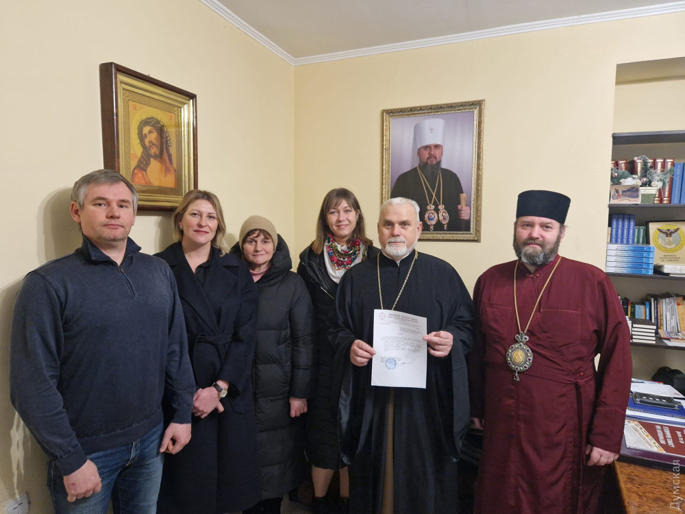 В Одеській єпархії ПЦУ повідомили, що архієпископ Одеський та Балтський Афанасій прийняв делегацію віруючих з Олександрівки, оформив їхній перехід до автокефальної церкви та затвердив новий статут громади.