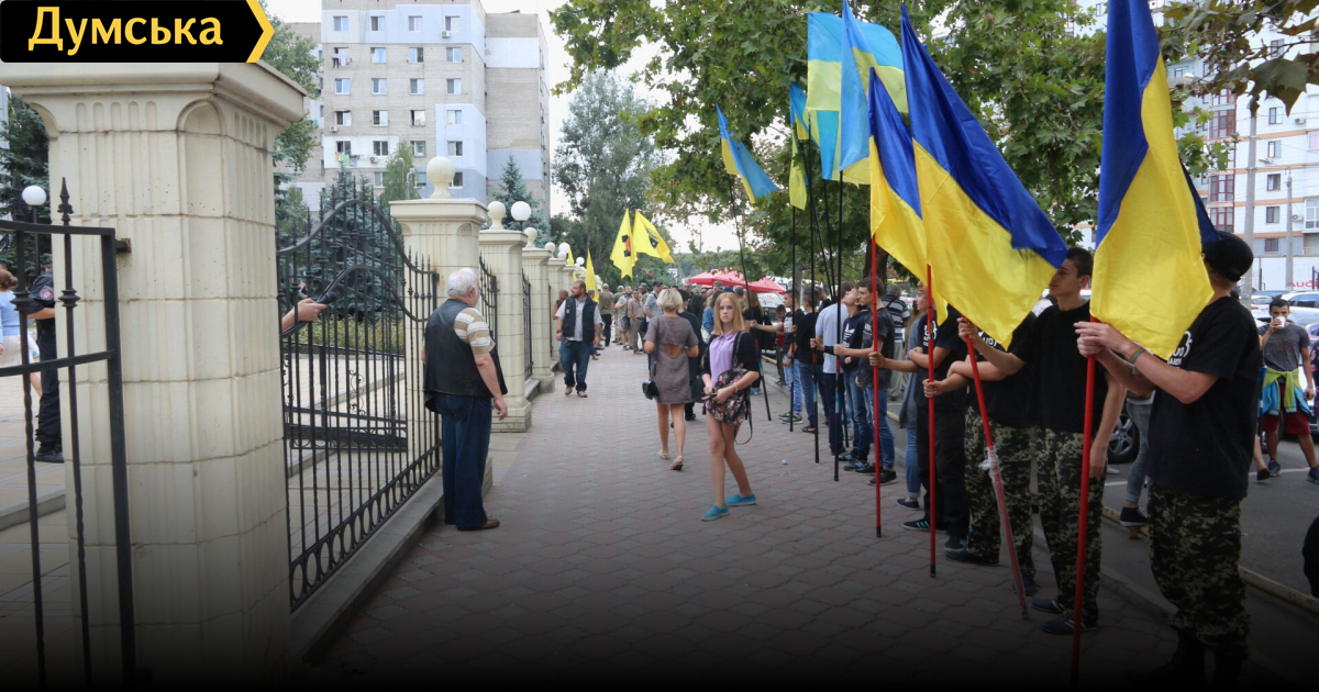 Под Приморским райсудом Одессы проходит акция против ареста Резвушкина и СтерненкоУ Приморского райсуда Одессы проходит акция протеста патриотических организаций, которым не нравятся действия правоохранителей в отношении лидеров «Правого сектора» и Антимайдана Сергея Стерненко и Евгения Резвушкина. Пока патриоты настроены мирно и штурмовать суд не собираются, передает корреспондент «Думской». Резвушкин в суд уже прибыл, причем сам. Стерненко все еще находится в здании УБОПа на Осипова. Оттуда его должны привезти силовики. Напомним, активистов обвиняют в серьезных преступлениях: автомайдановца — в хулиганстве и нападении на прокурора, представителя ПС - в похищении человека и разбойном нападении. Приморский райсуд должен избрать им меру пресечения. СМЕРТЬ РОСІЙСЬКИМ ОКУПАНТАМ! Помітили помилку? Виділяйте слова з помилкою та натискайте control-enter